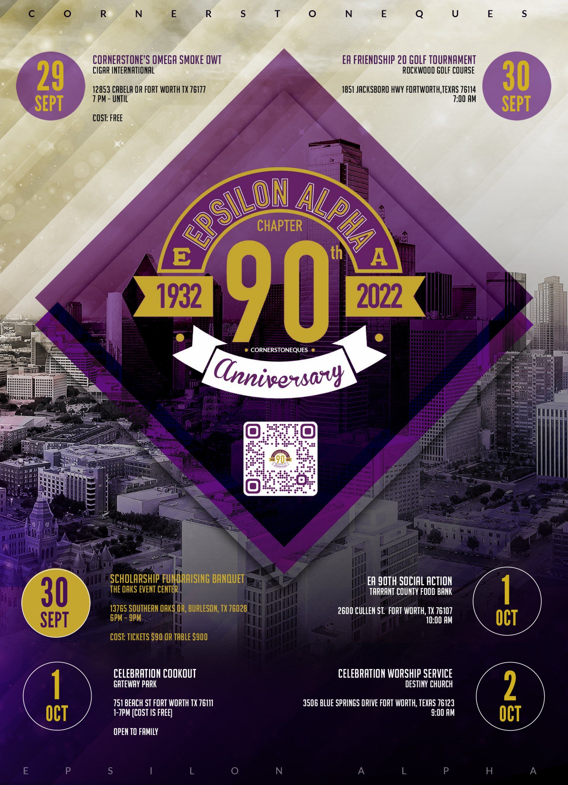 The Epsilon Alpha Chapter of Omega Psi Phi Fraternity, Incorporated; better know as the "The Cornerstone Ques" was organized October 1, 1932 in Fort Worth, TX, under the direction of Brother H.P. Carter, the then Ninth District Representative. It is the oldest chapter of Omega Psi Phi Fraternity, Inc. in the Dallas-Fort Worth Metroplex.