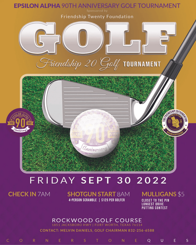 The Friendship Twenty Foundation, Inc., a non-profit, 501(c)3 organization, in conjunction with the Epsilon Alpha Chapter of Omega Psi Phi Fraternity, Inc. is proud to host its 90th Anniversary Celebration. This event will be held during to weekend of September 30, 2022 – October 1, 2022, in Fort Worth Texas. Our goal is two-fold: 1) Raise money to support our Foundation’s College Scholarship Fund and 2) Celebrate the arduous work of our membership over the years. We promote programs that include but not limited to the annual Charles Drew Blood Drive, AIDS/HIV awareness and our partnerships with the American Diabetes Association & Leukemia & Lymphoma Society of North Texas.